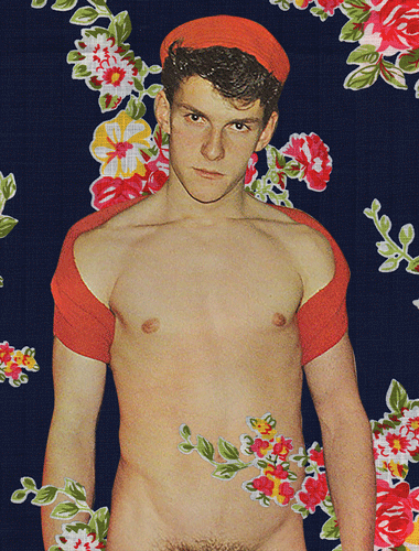“I’m rather shy and quiet and in social situations I want to disappear most of the time. (laughs) So instead of looking at that as a negative it became the initial inspiration for my Master’s collection. I thought it would be nice to make my models disappear, in a way and I started looking at the way battle ships during WWI & WWII were camouflaged with abstract patterns to dazzle the oponent. When you looked at the ships through a periscope, you couldn’t tell which way it was going. Other inspirations included quilts by Susana Hunter, a simple farmer woman from Alabama. Between the 1930 and 1970 she created beautiful, improvised patterns with material at hand. I find them very beautiful so I decided to use a lot of bold prints that have a retro, nostalgic feeling. Also, it was important for me to create a romantic but at the same time cheeky and sexy vibe, like the one seen in 70s male erotica, which I translated into soft draped shapes with a lot of flow. What I want to achieve with this collection is a really fluid line and abstract entity, so that when you see it in its entirety you don’t know what is what.”